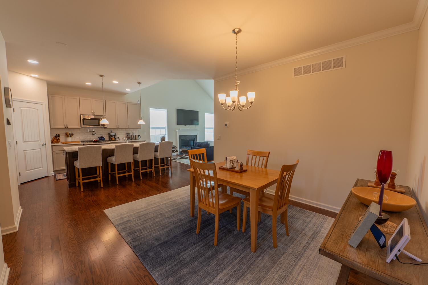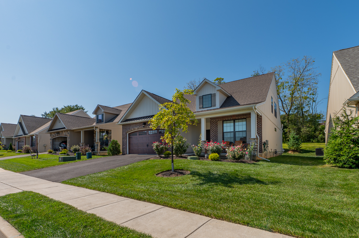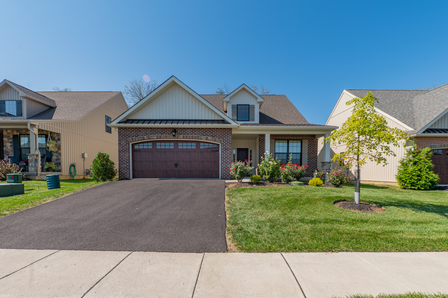 Discover the perfect blend of style, comfort and convenience in the desirable Fields at Indian Creek 55+ community. This move-in ready 2-year-old home boasts 3 spacious bedrooms and 3 full baths, including a roomy primary suite with WIC, large bath w/double vanity, tile shower w/bench seat, and water closet. The open-concept kitchen, living room, and dining room create a welcome space for entertaining, highlighted by cathedral ceilings, gas fireplace, and engineered hardwood flooring. The bright kitchen has a large center island, quartz countertops, 42" cabinets, stainless appliances, and a tile backsplash. Additional features include first-floor laundry, wider hallways and doors, oversized 2-car garage with EV charging station, and high-end upgrades throughout. The 2nd floor contains a spacious loft area, bedroom and full bath. The huge basement has an outside entrance, 9’ ceiling, epoxy flooring—perfect for storage or ready to be finished. This vibrant community boasts premium amenities including a heated outdoor pool, pickleball and bocce courts, and walking trails. The clubhouse offers a fitness center, meeting rooms, library, and fully accessible kitchen, providing endless opportunities for recreation and socialization. Monthly HOA fees cover trash/recycling, snow removal, landscaping, and lawn maintenance. The home has been meticulously maintained and is conveniently located with easy access to major roadways, restaurants, hospitals, and shops.