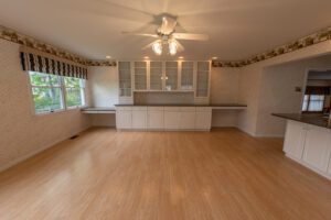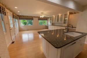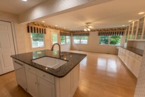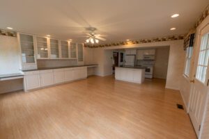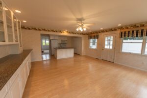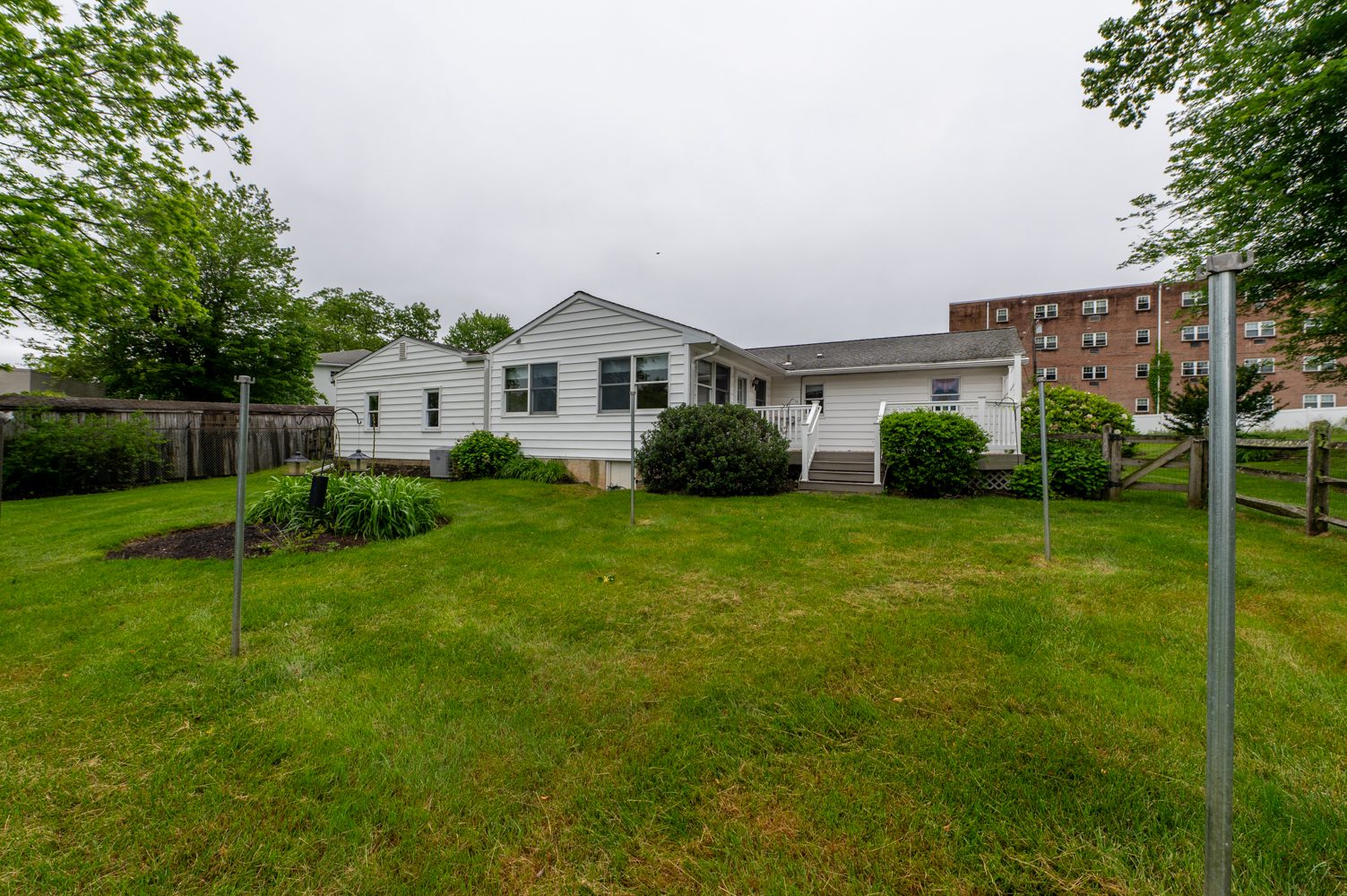 Step into the living room featuring a cozy wood-burning fireplace, perfect for relaxing evenings. The sunroom provides a warm and inviting space for a second family room filled with natural light. a walk in closet offers an abundance of storage. The large, updated kitchen boasts a wall of built-in cabinets with custom lighting, plenty of counter space, and expansive windows offering views of the fenced backyard. Ideal for entertaining or everyday living, the kitchen flows seamlessly to the Trex deck—great for outdoor dining or summer barbecues. A generously sized yard is perfect for pets, play, or gardening Located just minutes from shopping, dining, and major routes, this home offers both convenience and tranquility.